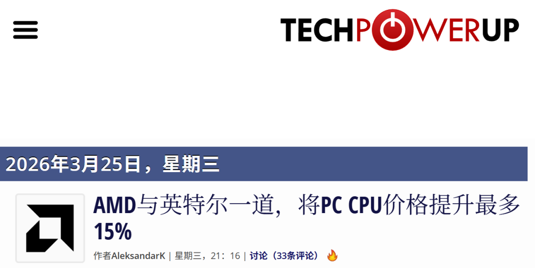 就在最近,Intel 和 AMD 跟商量好了似的,都向合作伙伴和 OEM 厂商发出了 CPU 上涨的调价函,Intel 在 4 月份开始对整体消费级 CPU 上调 10%-15%,AMD 未给出具体区间,但幅度预计也差不多。