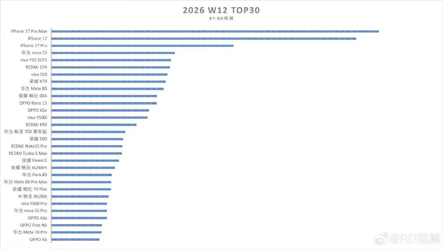 IT之家 3 月 28 日消息,OPPO 全新折叠旗舰 Find N6 自 3 月 20 日全球同步开售以来表现强劲。首销前三日销量即突破 5.64 万台,强势跻身 2026 年第 12 周中国市场手机激活量 Top 30,成为榜单中唯一入围的万元级折叠屏手机,印证了其在高端市场的强大竞争力。