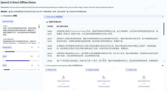 Qwen3.5-Omni-Plus处理这集内容大概用了1分钟,速度还是较为理想的。它的描述完整覆盖了视频时间线,无跳跃或遗漏,符合“按时间描述”的核心要求。