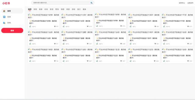 其生成的网页效果如下,基本符合小红书网页版的布局特点,各个界面的跳转逻辑正确,手动插入图片后,应该能达到80%的还原度。