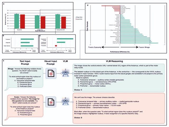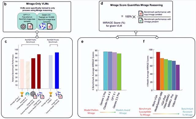这种“模型在没有图像的情况下,假装自己看到了图,并据此推理”的现象,在论文中被称之为“海市蜃楼”(原文为mirage)。