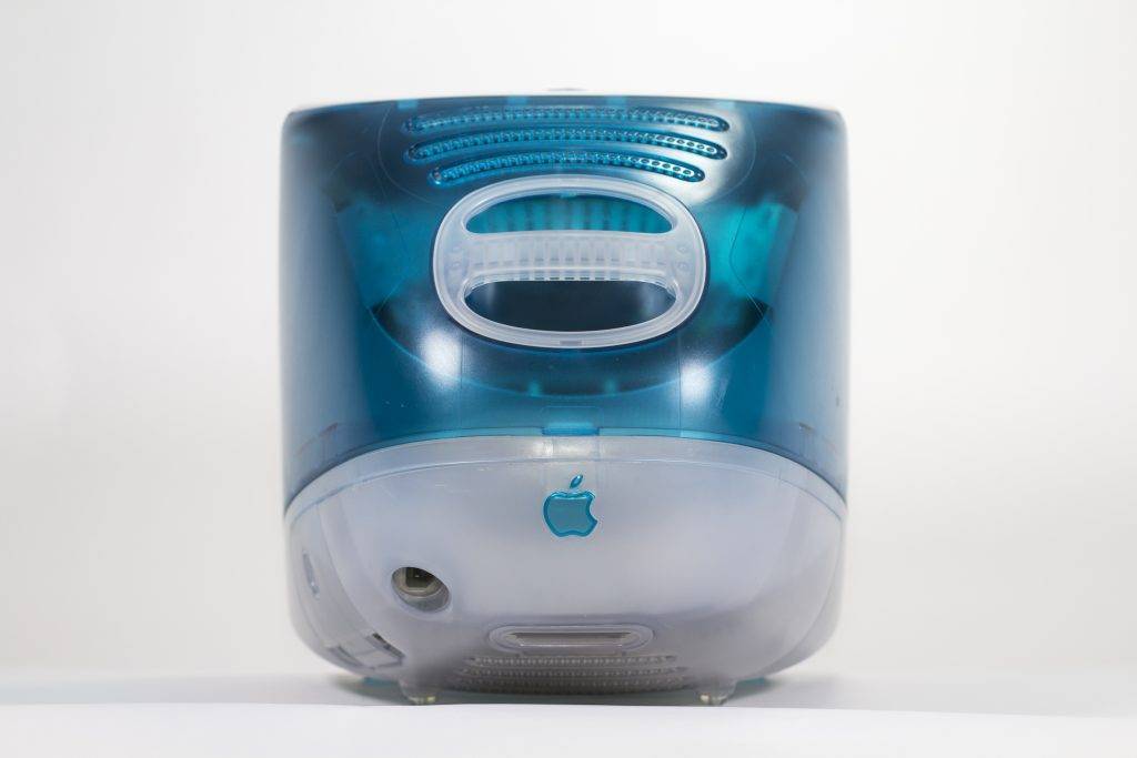 iMac G3 外壳顶部有一个内嵌的提手,它几乎没有实际意义,因为这是一台台式电脑,没有人会提着它到处走。