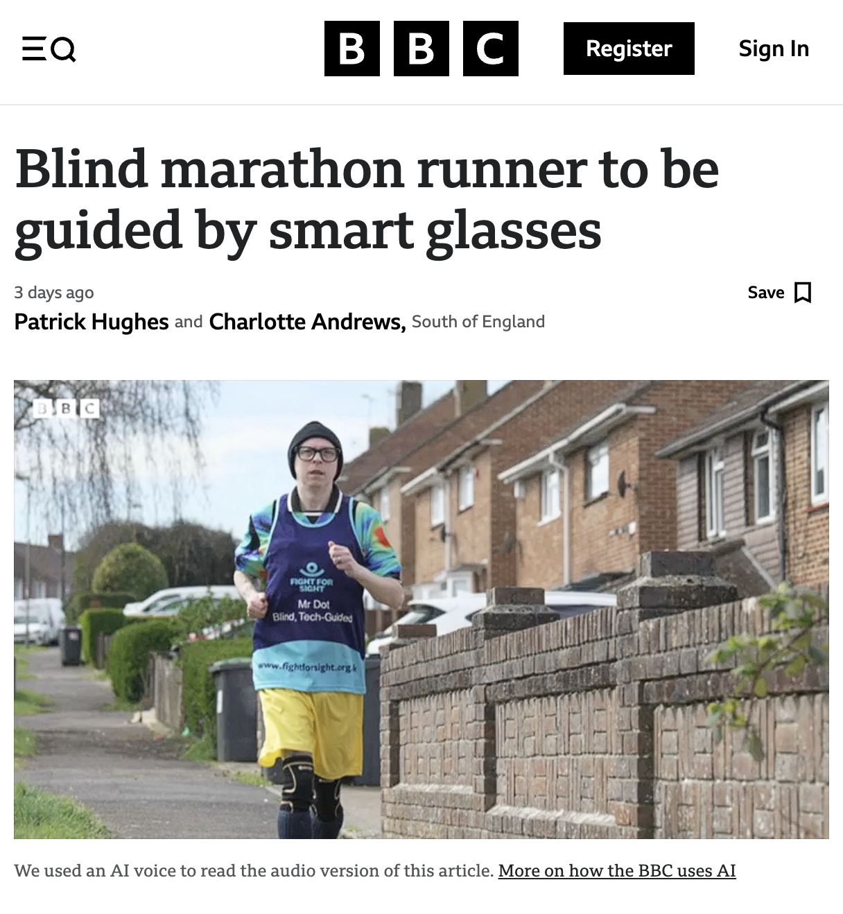 IT之家从报道中获悉,雷诺兹将通过 Be My Eyes 应用连接全球志愿者,而不再依赖实体领跑员。借助智能眼镜上的摄像头和扬声器,志愿者可以实时看到他的视角,并在全程 42.2 公里中提供语音引导。“志愿者会提醒我前方是否有障碍,比如说,垃圾桶或停放的车辆。更多时候,我们也会讨论视力损伤相关的话题。”