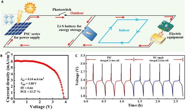 此外,鞋垫中集成了纳米钙钛矿太阳能电池(PSC)与高容量锂硫(Li-S)电池,其平均光电转换效率达 11.21%,储能效率达 72.15%。这意味着在日常行走中,当穿着者迈步于户外或有光线的环境下,鞋垫就能通过太阳能为自己“充电”;而在无光条件下,内置的锂硫电池保证持续 8 小时以上供电。