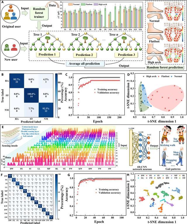 经过训练和优化,这套智能系统对足弓异常的识别准确率达到了 96.0%;更令人瞩目的是,它对 12 种病理步态模式的综合分类准确率高达 97.6%。