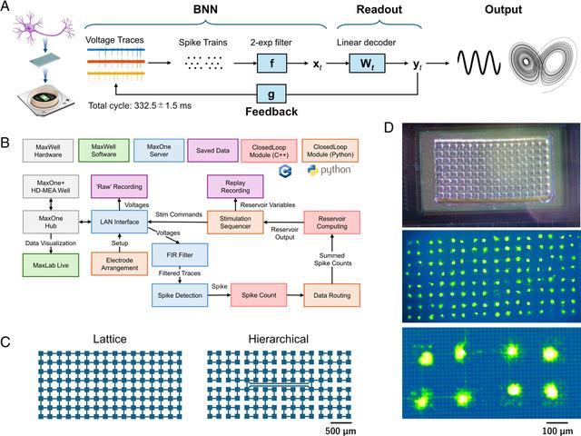 日本东北大学与未来大学研究团队集成活体神经元与高密度微电极阵列及微流控设备,构建了“闭环储备池计算”(Reservoir Computing)系统。该系统无需外部输入,即可自主学习和生成周期性及混沌波形(Chaotic Waveform),执行 AI 计算任务。