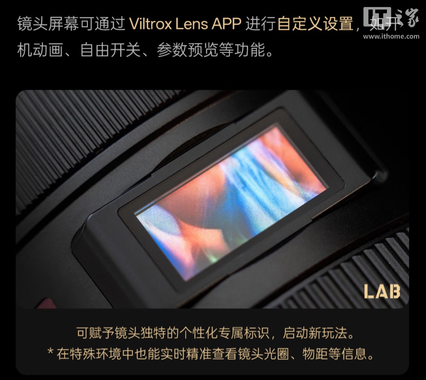 根据官方介绍,原有的镜头屏幕可通过 Viltrox Lens App 进行自定义设置,如开机动画、自由开关、参数预览等功能。