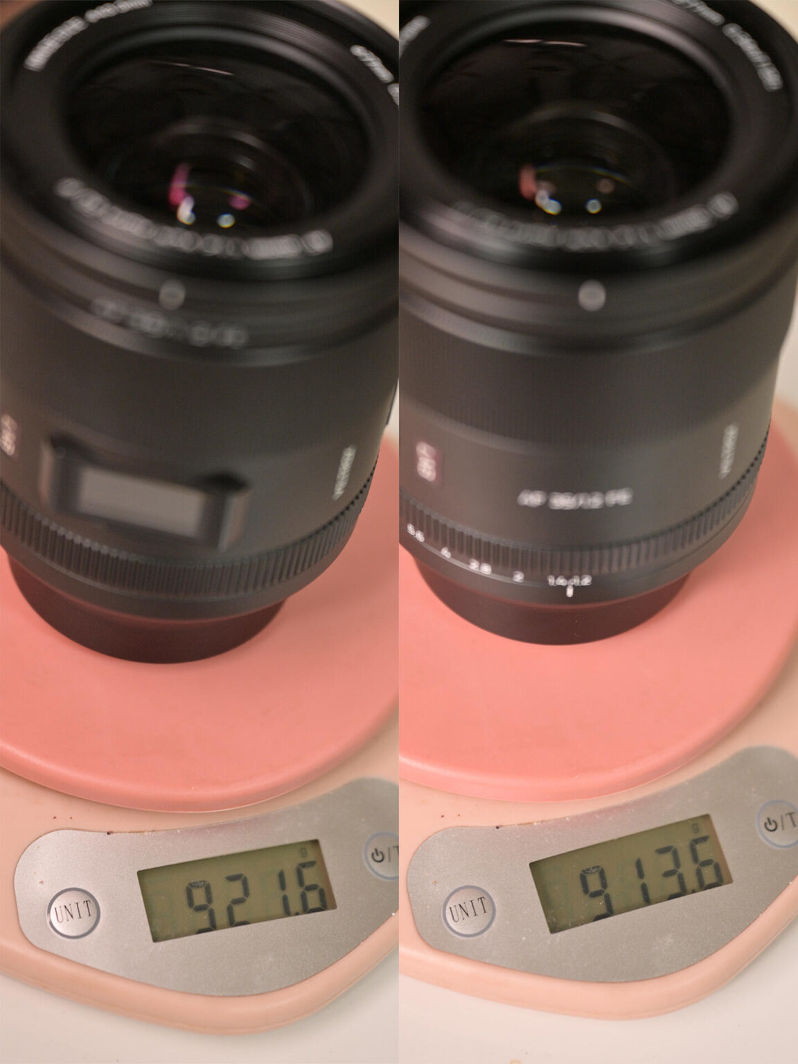 由于去掉了屏幕,两款镜头的重量也有所区别。据曝光的照片显示,现款镜头重 921.6g,新款则重 913.6g。