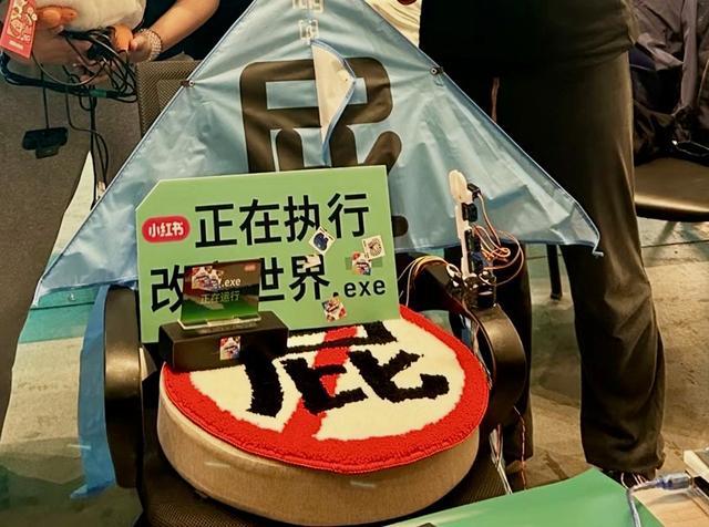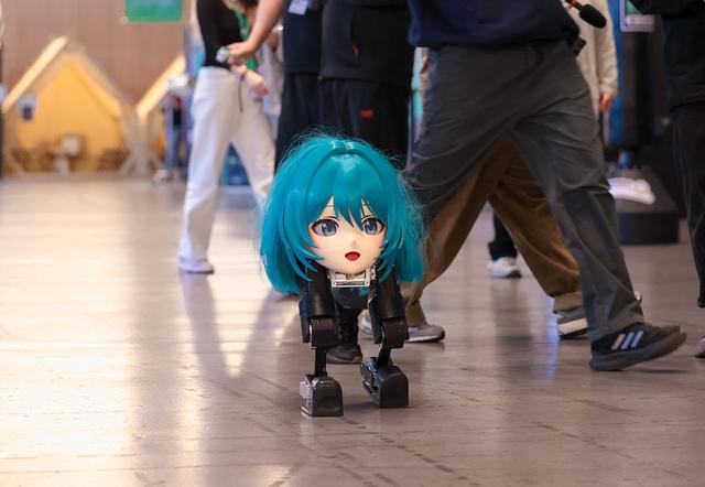 还有灵光一闪的即兴合体,创造了一个意外的惊喜:一个团队做的短腿机器人,刚巧能顶着另一个团队用“龙虾”skill做的初音未来头壳,这个抽象组合满场晃悠,吸引了许多选手及观众驻足拍照。