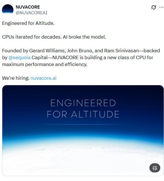 那么,NUVACORE打算做什么?答案就在他们的推特首个推文里——AI芯片,同时还附上了一句:CPU已经迭代发展了几十年,但是AI已经彻底改变了这个行业。