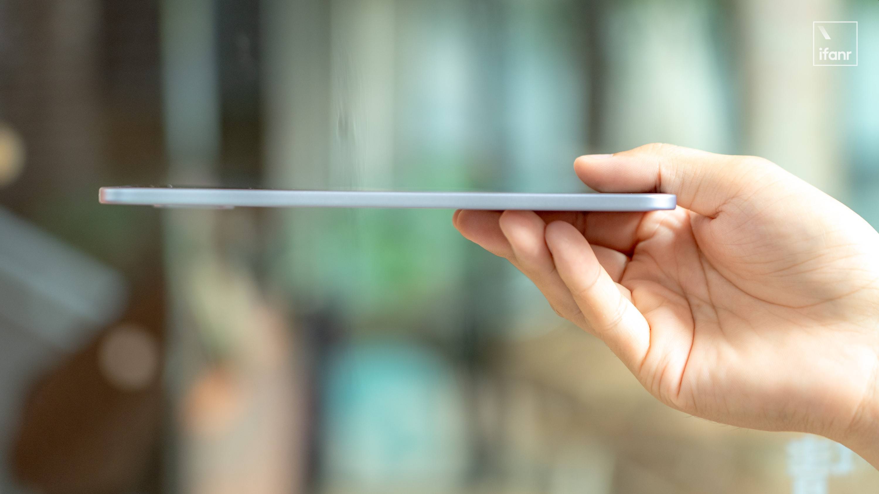 机身足够薄,侧边的按键都压缩得十分紧凑,顶部还有预留扬声器的开孔,如果底部的 USB-C 可以中置摆放,观感会更好。