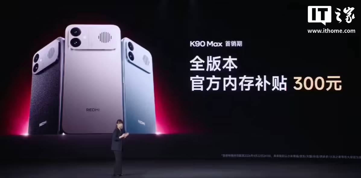 IT之家 4 月 22 日消息,小米 REDMI 手机今日宣布,K90 Max 成为销量冠军,发布 4 小时,刷新近一年全渠道 3K-4K 新机首销纪录。