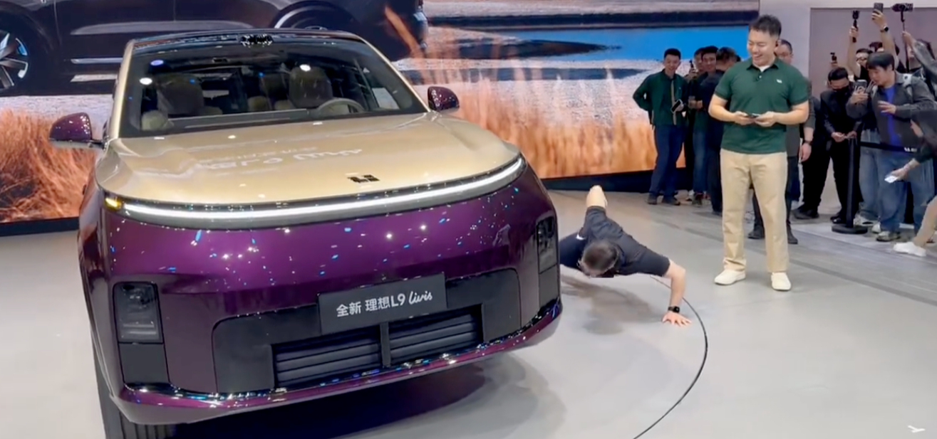 在稍后的直播中,理想汽车产品线负责人汤靖(老汤哥)与全新理想L9 Livis上演了一场别开生面的“俯卧撑PK”。汤靖在舞台上做起单手俯卧撑,身旁的全新理想L9 Livis则通过800V主动悬架迎接挑战,最终老汤哥只做了三个就“趴”倒,输给了L9Livis。汤靖还称,全新理想L9 Livis 5月15日将举行正式发布会,上市即交付。