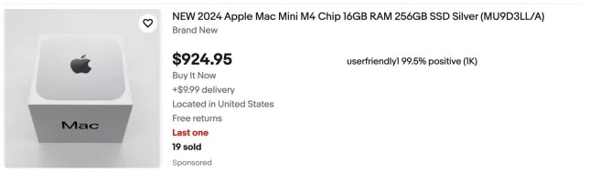 受此影响,eBay 已成为这款热门电脑的二手转售市场。平台上各配置版本的 M4 Mac mini 售价均高于苹果官方原价,而官方渠道目前已无现货可购。