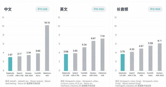定价方面,StepAudio 2.5 ASR为0.15元/小时,仅为上代Step ASR 2的1/10。