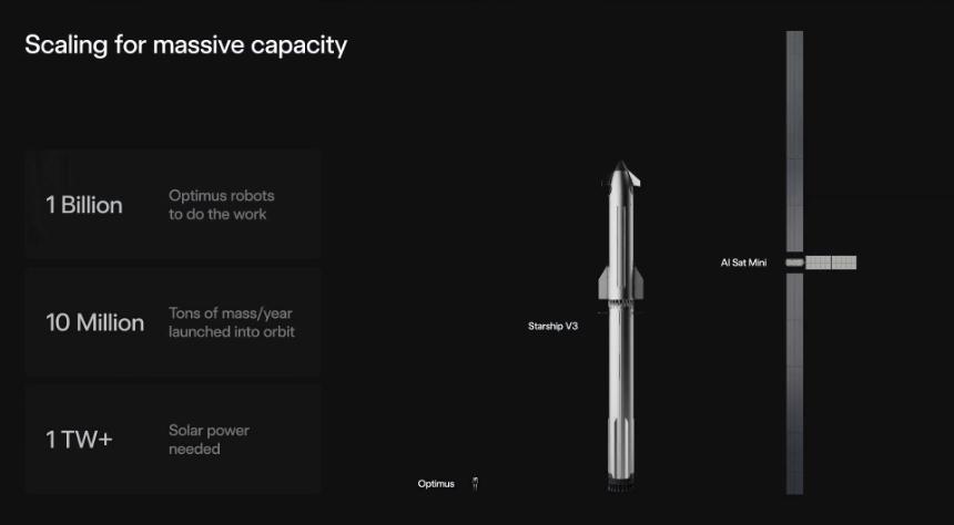 SpaceX的星舰是整个拼图中的关键一环,因为要扩展计算能力、扩大能源规模,就必须走向太空,这意味着你需要将巨大的有效载荷送入太空,而星舰将实现这一点。