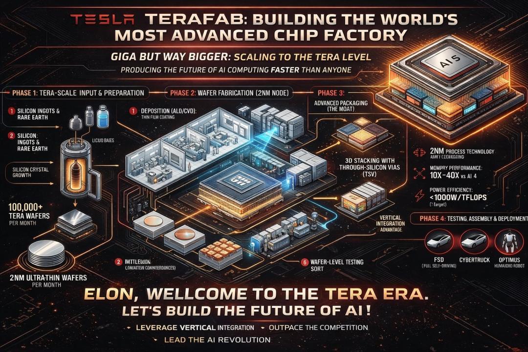 特斯拉、SpaceX、xAI一起建设有史以来最大的芯片制造工厂TERAFAB。
