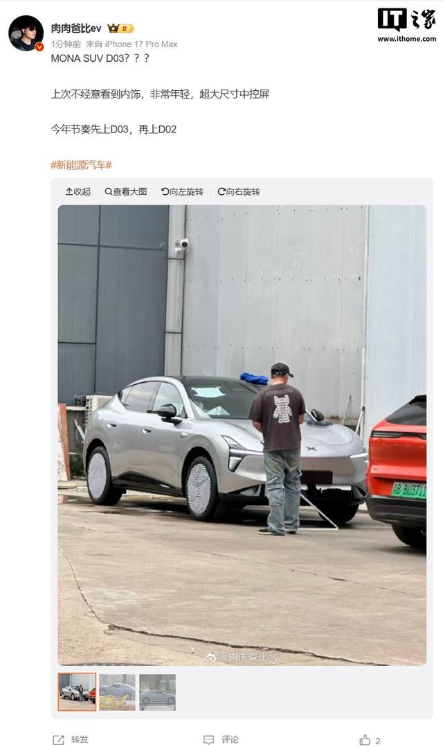 博主 @肉肉爸比ev 表示:“上次不经意看到内饰,非常年轻,超大尺寸中控屏。今年节奏先上 D03,再上 D02。”
