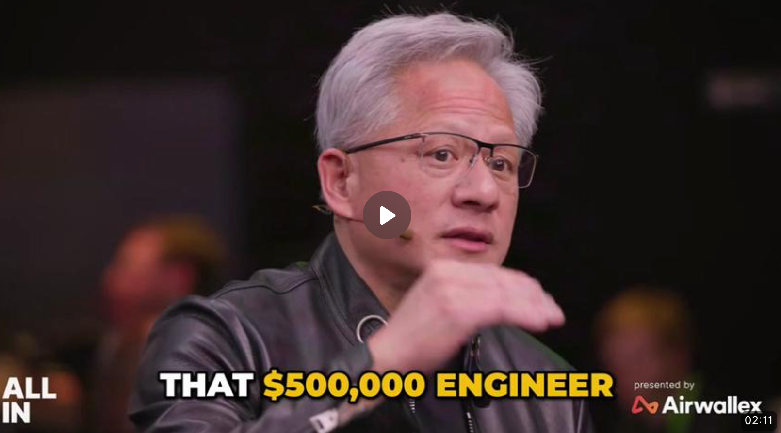 在最近的一个播客节目上,黄仁勋早就看穿了这一切,他说,工程师的年薪里,Token 预算将与现金同等重要,甚至可能达到年薪的一半。
