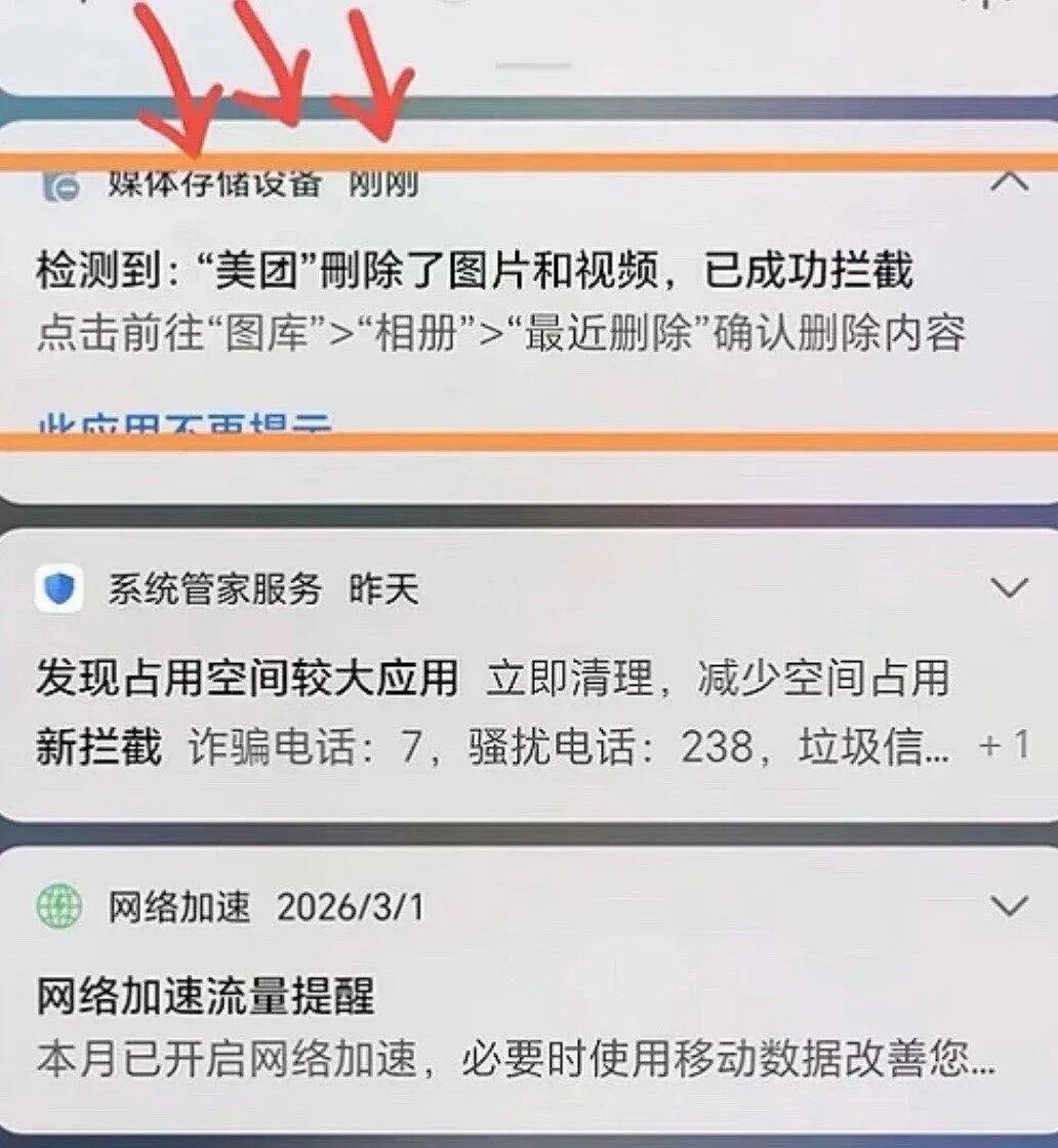 自 2026 年 3 月 18 日起,多名华为、小米、OPPO、iQOO 等品牌的安卓用户发现,在未进行任何操作的情况下,手机相册内数百至数千张照片及多媒体文件被清空,系统拦截日志明确指向“美团”应用为删除主体 。
