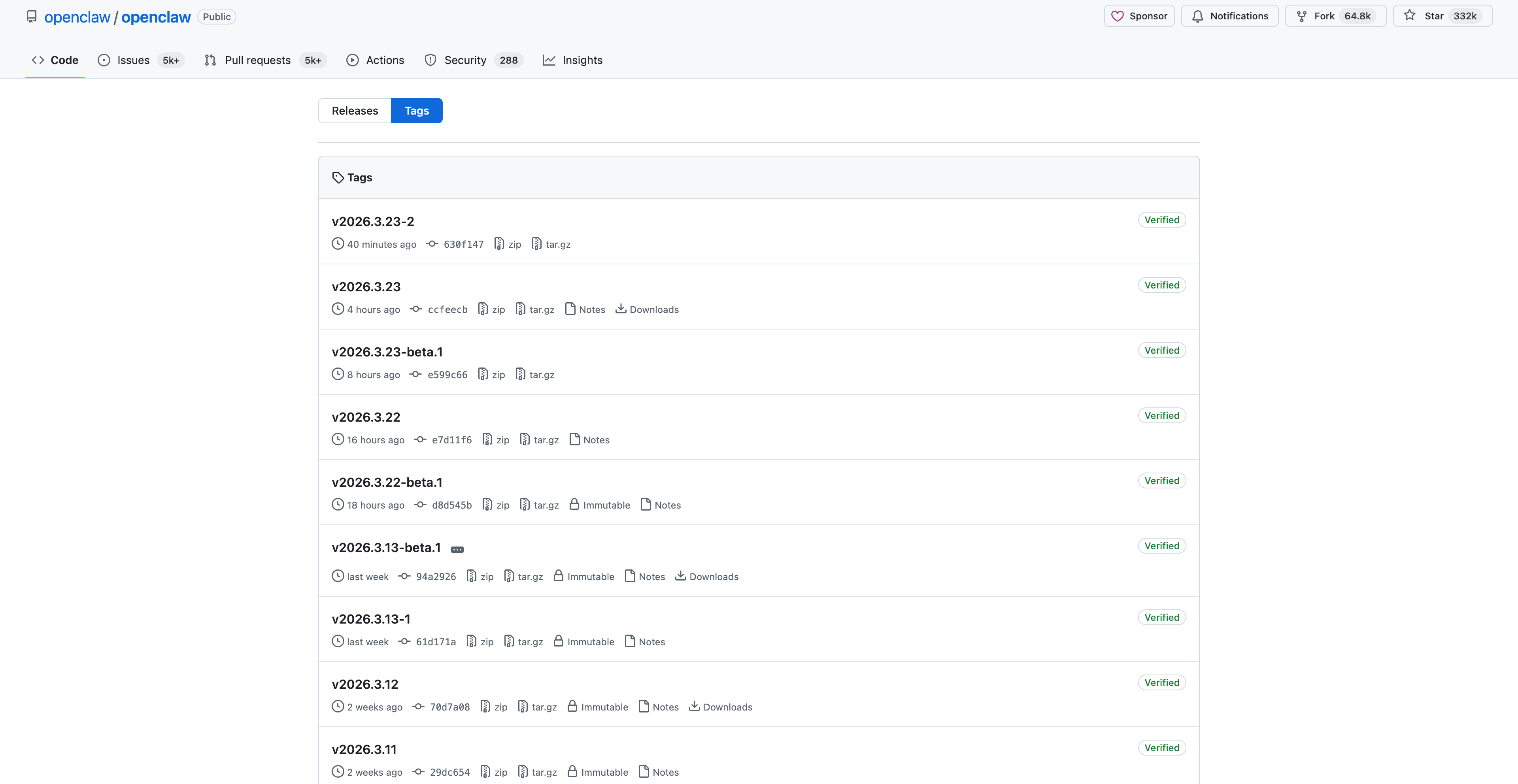 OpenClaw 现在可以说是 GitHub 上的顶流开源项目,几乎每天都有人在为他提交优化代码,而官方基本上也是保持在 2-3 天就会更新一个新的发布版本,每次都是大量的 fixes 代码修复、changes 变更,和 breakings 大改动。