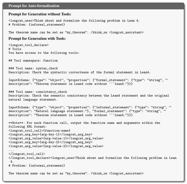在这个过程中,所有输入的问题都会被统一看作自然语言语句(包括完整问题、未完成的证明或中间推理步骤),然后由专门的自动形式化专家模型(记为πθaf)进行转换,输出对应的形式化语句。这个过程并不简单,因为模型既可能写出语法错误的代码,也可能在语义上偏离原题,比如误解条件或改变问题含义——论文中称之为“篡改原始问题语义”。