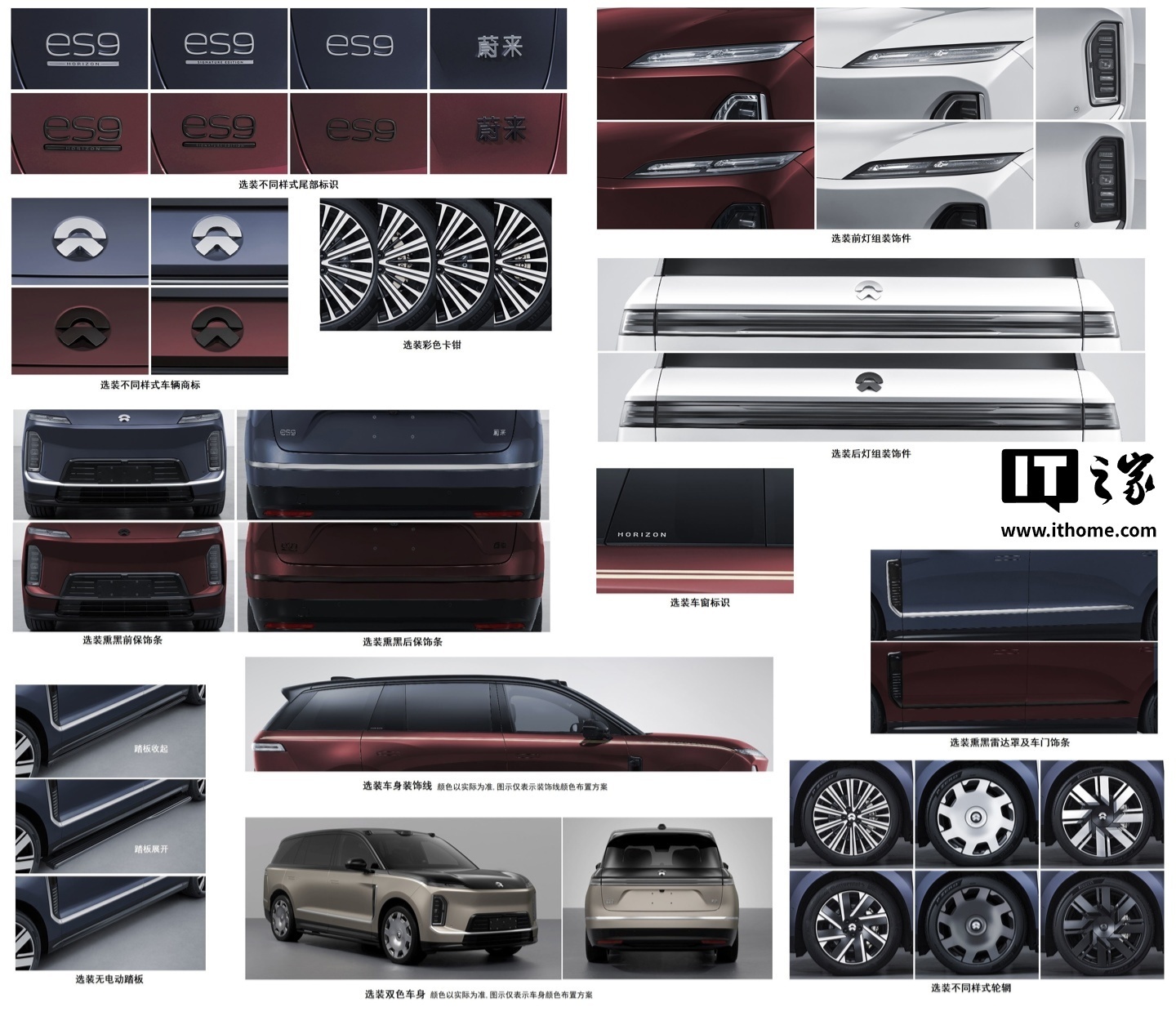 回看全新蔚来 ES9 的外观,新车延续了家族化设计语言,车顶配备激光雷达。全新蔚来 ES9 还提供双色车身可选,工信部信息显示,新车尺寸为 5365×2029×1870mm、轴距 3250mm,最高车速 220km/h,配备前 180 后 340kW 双电机。