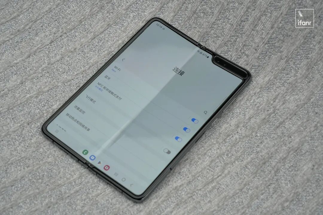 然而即使跨过这么多年,拿起这台 Galaxy Fold 最具有冲击力的第一观感,仍然是中间那条巨大的折痕: